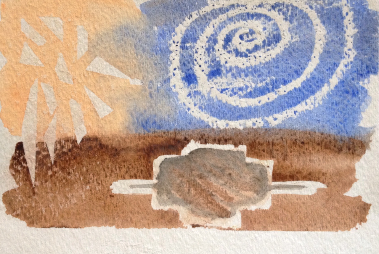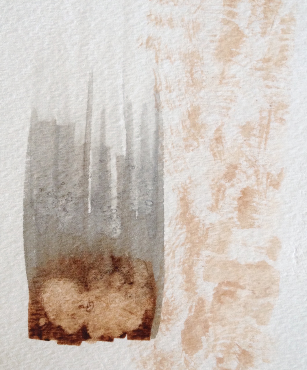 Stippling technique followed by sandpaper applied after drying – to give a worn look. Too monochrome and overworked. Too forced. I don’t like this one. Toss.