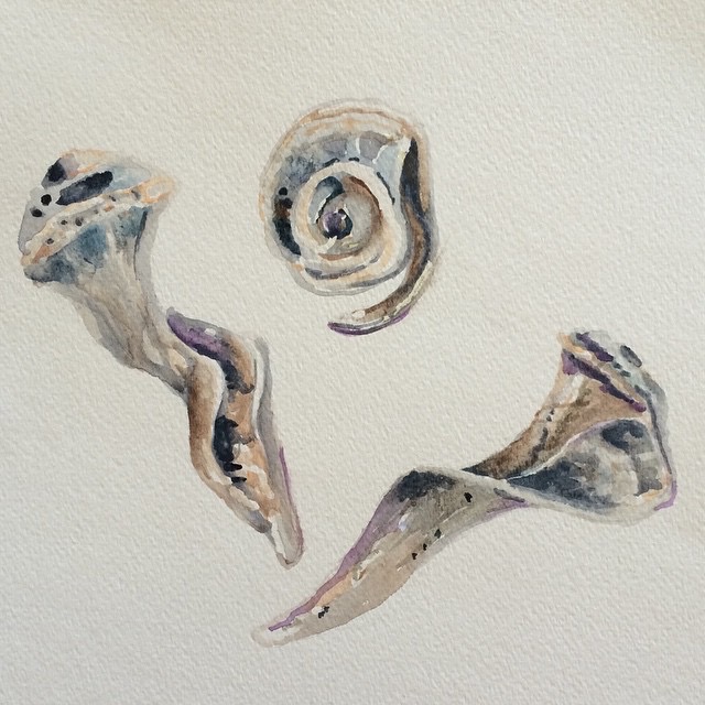While attempting to paint a realistic rendition of the shell, I thought about where it came from. Not literally. I know that my friend picked it up from where the ocean meets the shore and put it in my hands. But before that, how far must that shell have traveled to become so beautifully weathered and worn? What was its story?